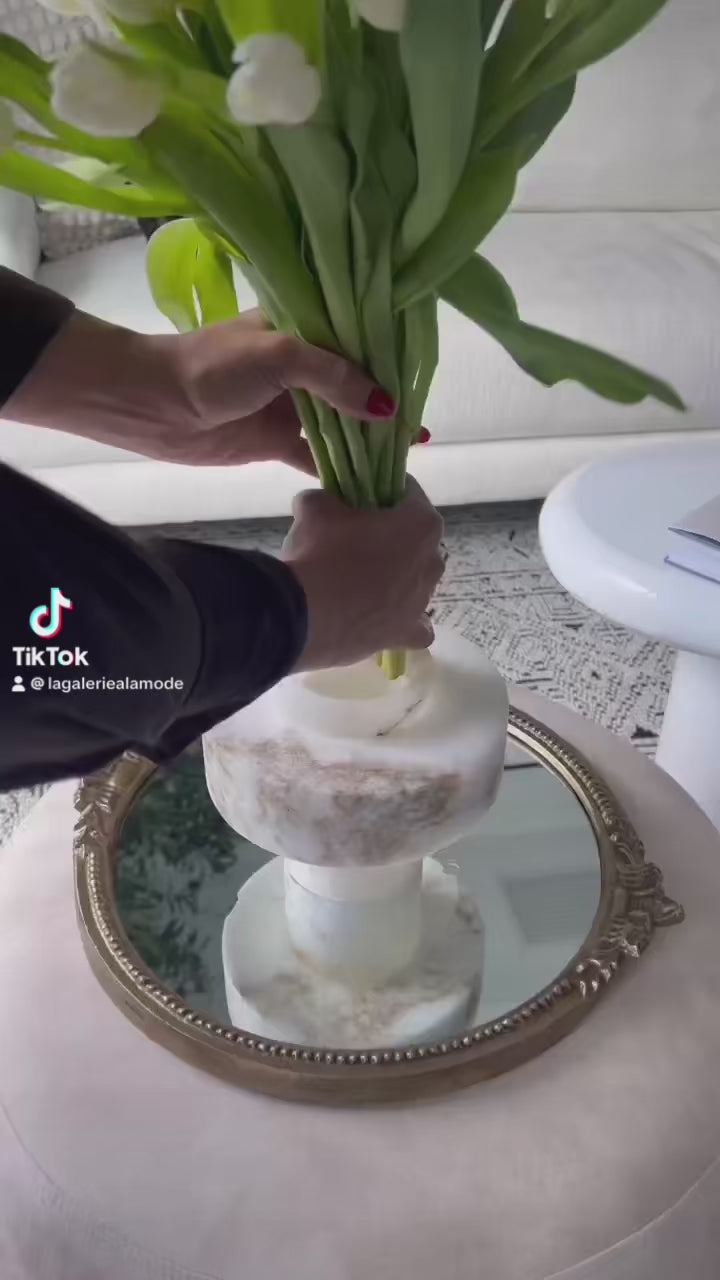 Introducing the Modern Valérie Vase - a stunning piece of decor that will elevate the ambiance of any space. With its minimalist Scandinavian design, this luxury Nordic flower vase exudes elegance and sophistication, making it the perfect addition to your home. Crafted from high-quality stone and natural marble, this vase features a pristine White Onyx finish that complements a range of interior styles. Its generous size makes it a captivating centerpiece in any room, while its versatility allows it to be used in a variety of ways - from holding flowers to simply standing on its own as a decoration piece. Transform your living space into a haven of style and elegance with the Modern Valérie Vase. Whether you're looking to add a touch of modern charm to your home or create a captivating centerpiece that's sure to impress your guests, this vase is a must-have. So why wait? Elevate your decor today and let the beauty of this piece shine in your home.
